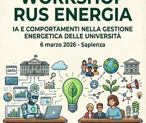 Venerdì 6 marzo dalle 11:00 alle 17:00 presso l’Università degli Studi di Roma La Sapienza, il Gruppo di Lavoro RUS Energia organizza un workshop dal titolo “IA e comportamenti della gestione energetica delle università”.
